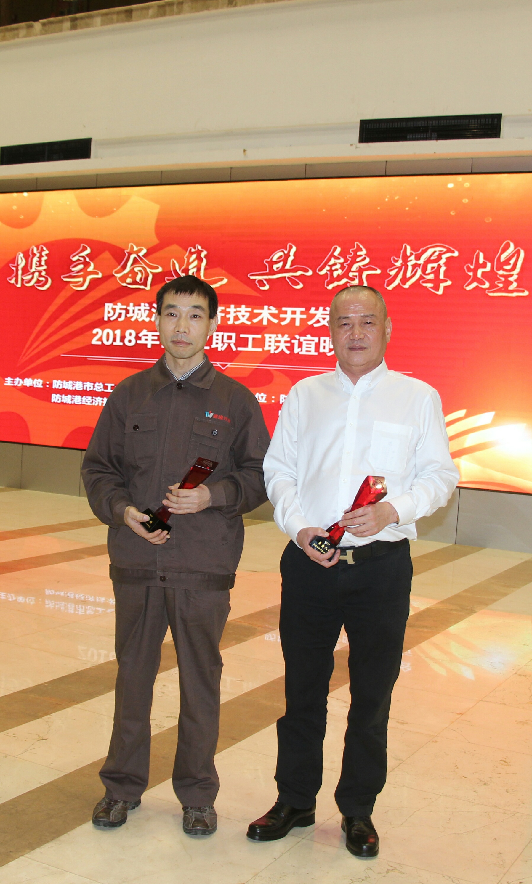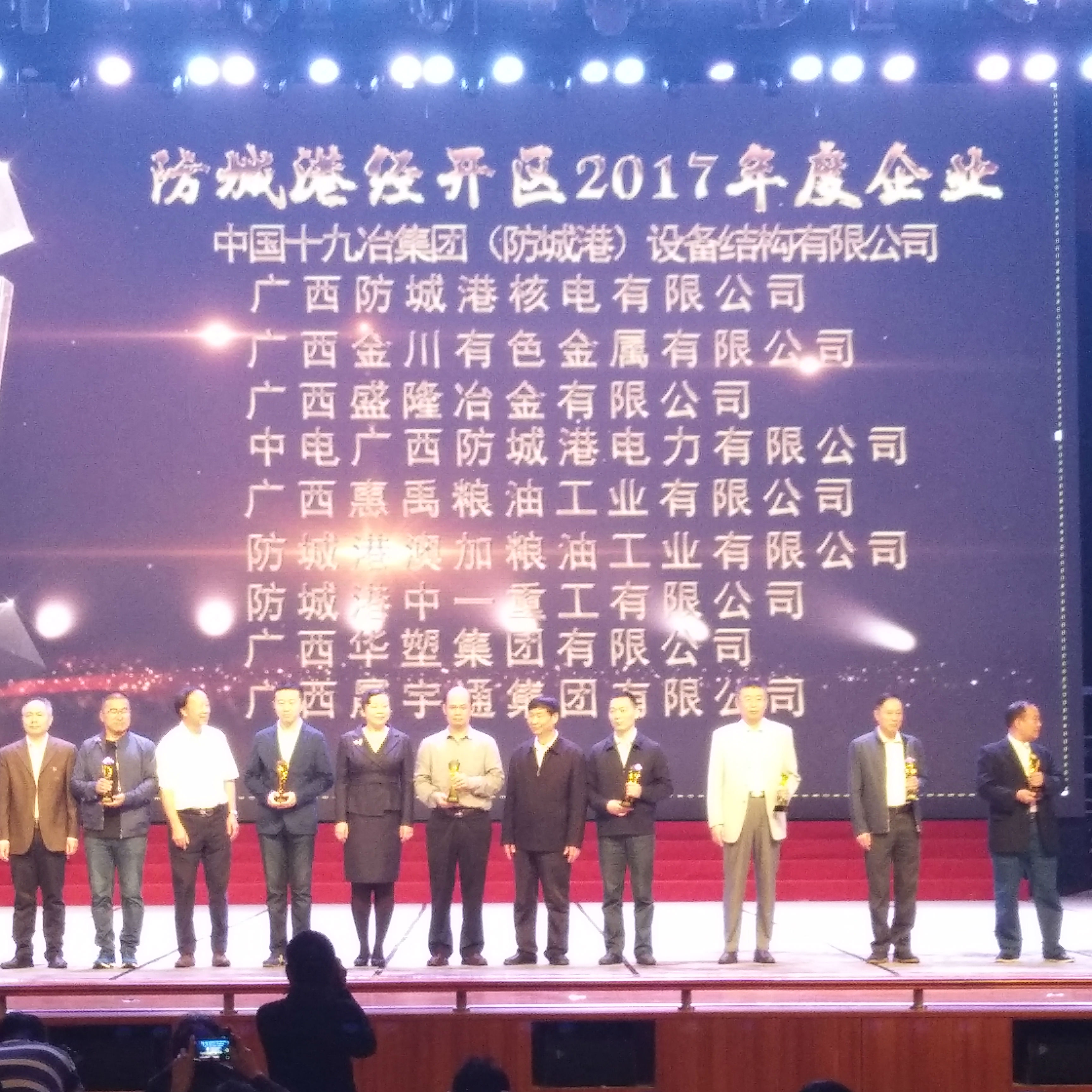 3月17日晚上八点,由防城港市总工会、防城港市经开区管委联合主办的防城港经开区2018年企业职工联谊晚会在市文化艺术中心隆重举行,市政府副市长姜明、市政协副主席林兴等19位市领导出席晚会并为获奖企业和个人颁奖。