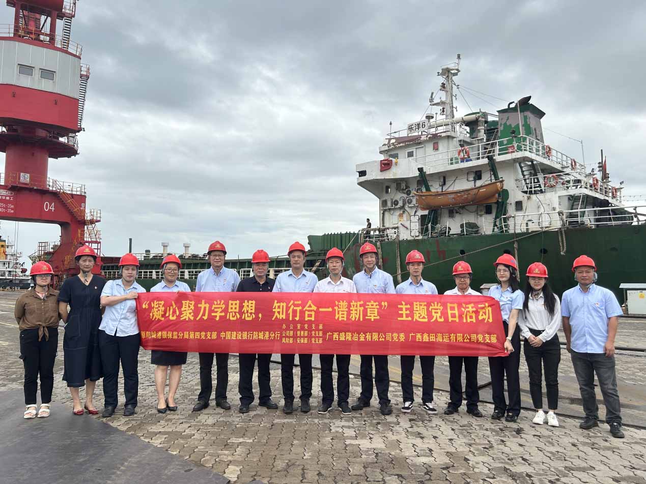 8月26日,买球(中国)官方网站 党委,原防城港银保监分局第四党支部,中国建设银行防城港分行办公室、公司部、风险部党支部,广西鑫田海运有限公司党支部,为深入学习贯彻习近平新时代中国特色社会主义思想,牢牢把握“学思想、强党性、重实践、建新功”总要求,坚持以学铸魂、以学增智、以学正风、以学促干,更好服务西部陆海新通道建设,促进北部湾国际门户港高质量发展,联合开展“凝心聚力学思想,知行合一谱新章”主题党日活动,并参观了买球(中国)官方网站码头公司。