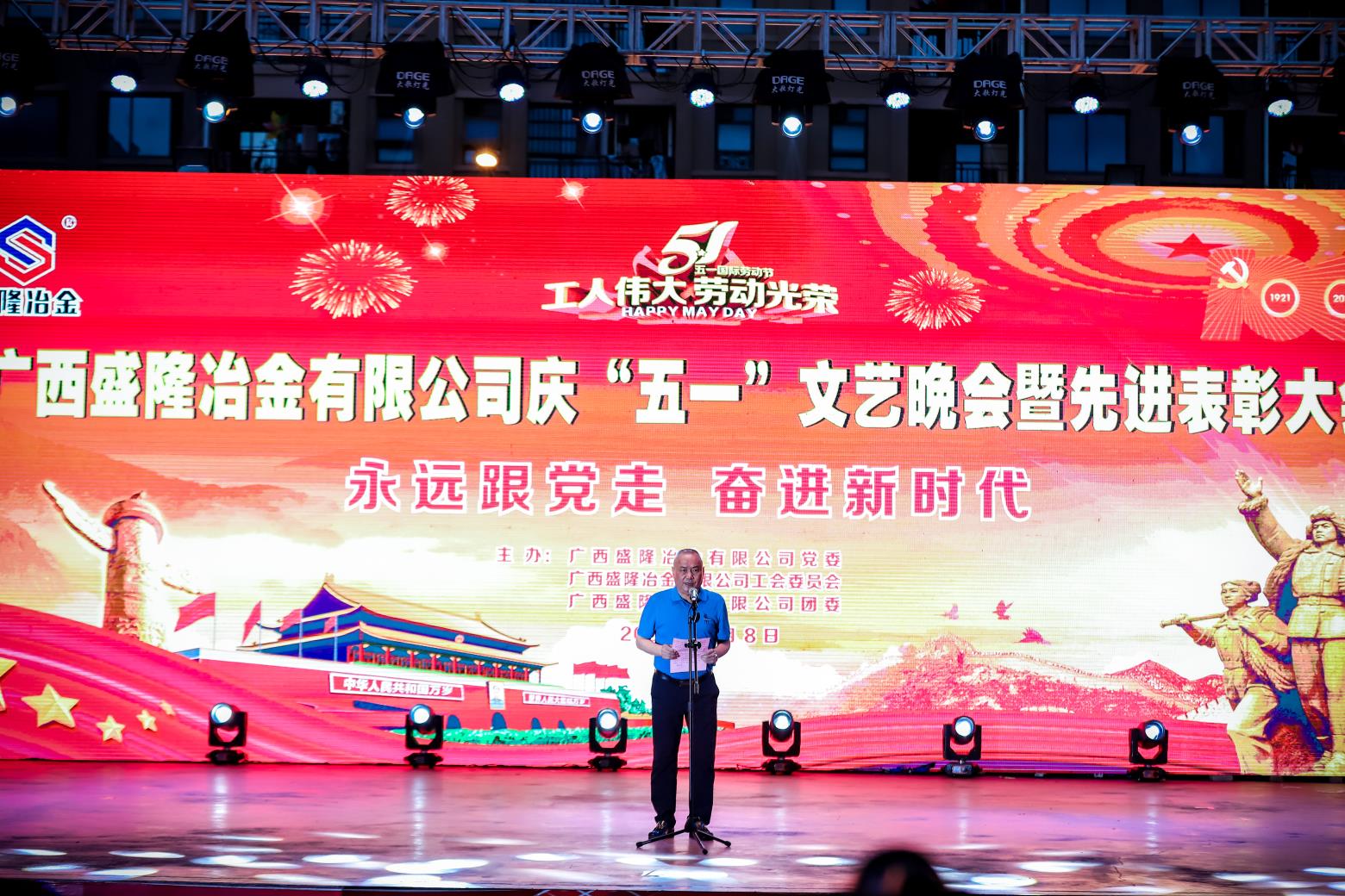 5月8日晚,买球(中国)官方网站 买球(中国)官方网站佳园文化广场歌声嘹亮,掌声如潮。由买球(中国)官方网站 党委、工会委员会、团委联合主办的“永远跟党走,奋进新时代——庆‘五一’文艺晚会暨先进表彰大会”在这里隆重举行。公司常务副总经理陈亮出席晚会并致辞,副总经理兼安环总监吕华民、副总经理兼技术中心主任刘光穆、总工程师兼规划发展部经理梁新亮、总经理助理兼广西广盛高强耐磨新材料有限公司总经理王文凯、党委常务副书记游元喜、工会主席兼总经理办公室主任刘明奇及各厂部主要领导出席。