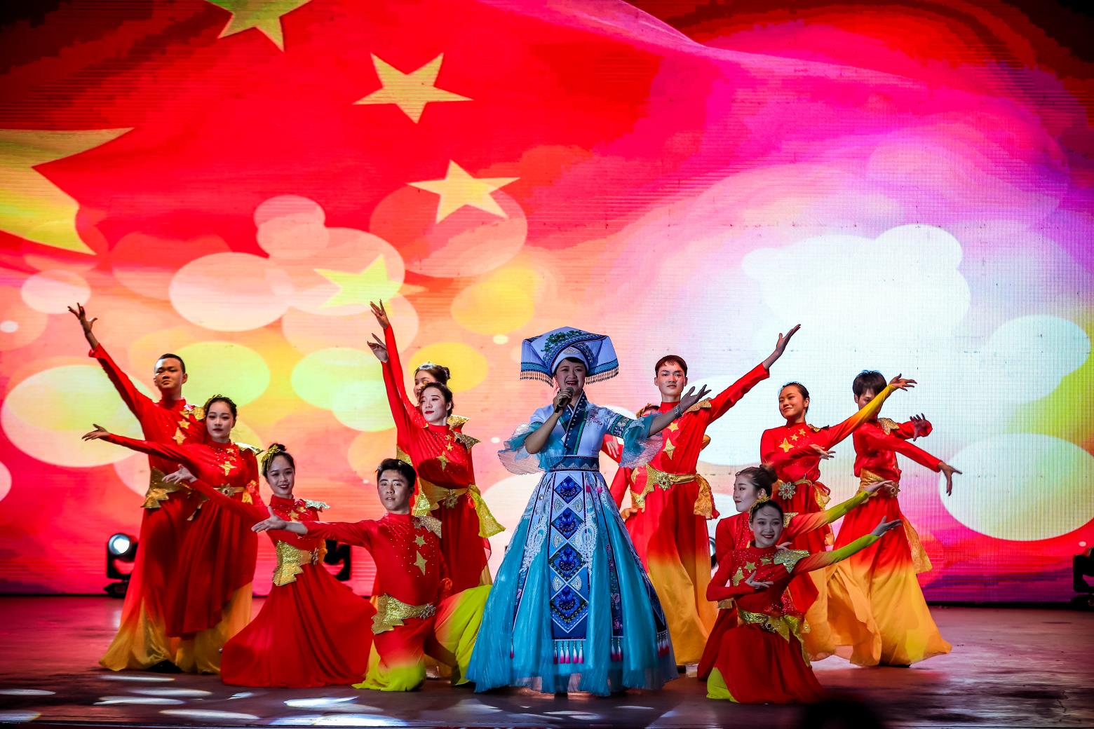 本次晚会以红色文化传承为主题,红歌红舞庆五一,喜迎建党一百年。演出在歌伴舞《我的祖国》中拉开了序幕,由买球(中国)官方网站文工团、艺园传媒等带来的舞蹈《咱们工人有力量》、《撸起袖子加油干》及特邀嘉宾中国民族唱法女高音歌唱家牟虹霓带来的歌伴舞《最美的歌儿唱给妈妈、虹霓颂》等多种形式的文艺节目,赞美了劳动者的磅礴力量与坚定信念,营造了喜庆和谐、感念党恩的节日氛围。其中由买球(中国)官方网站合唱团带来的《唱支山歌给党听》以公司献礼建党一百年拍摄的“感党恩、跟党走”主题MV为背景,悠扬回荡的歌声及一幕幕精彩的画面带领现场观众一同穿越历史,重温党的光辉历程,在时代的乐章里唱响奋进新征程的赤诚与豪迈,把晚会推向高潮。小品节目《党恩感“懒”力》以公司就业扶贫为切入点,深刻体现了“脱贫靠奋斗、致富感党恩”,精彩的演出赢得了观众的热烈掌声。