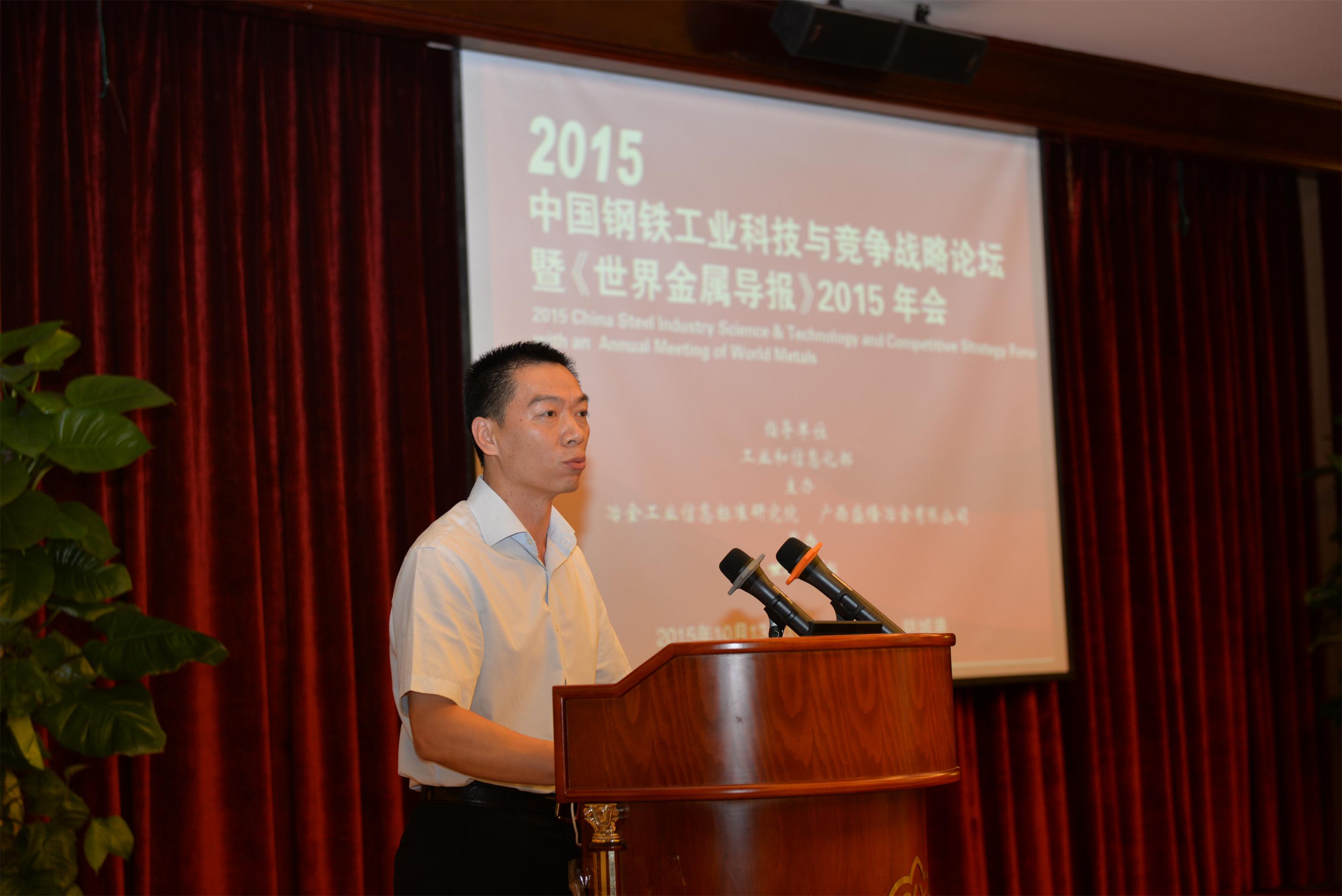 10月14日,由冶金工业信息标准研究院和我公司共同主办,世界金属导报社承办的“2015中国钢铁工业科技与竞争战略论坛”暨《世界金属导报》2015年会在防城港市龙德大酒店会议厅召开。会上,公司常务副总陈亮作为本次论坛的主办方发表了热情洋溢的欢迎辞,公司总经理助理黄玉鸿做了题为《立足根本,着眼未来,扬帆东盟》的精彩发言。随后,常务副总陈亮陪同与会的专家领导参观了公司全貌以及生产现场。